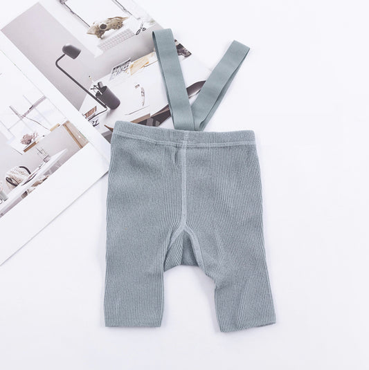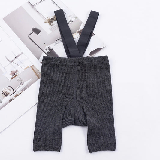 Unisex Ribbed Suspender Shorts - Light Grey