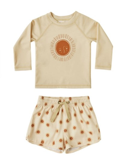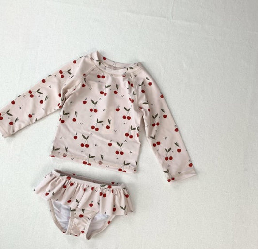 Rashguard and Ruffled Bottom Two Piece Set - Cherries