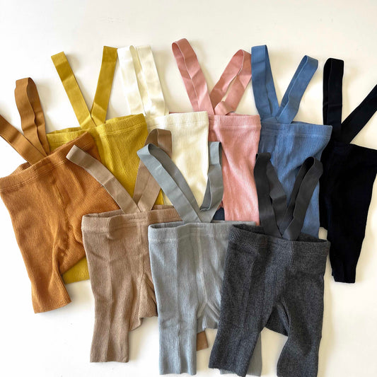 Unisex Ribbed Suspender Shorts - Mustard