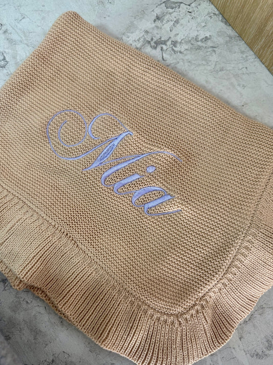 Personalise MeScalloped Edge Knitted Blanket - Chai