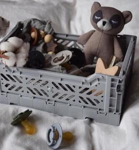 Aykasa folding crates are an innovative and beautiful way to store anything you can think of. The Mini size is perfect for toys, books, clothing, muslins etc. They are also FDA and BGA approved and can easily be washed or put in the dishwasher meaning they are perfect for storing food items or arranging bottles and dummies and can even be used in the refrigerator. They are also 100% recyclable.