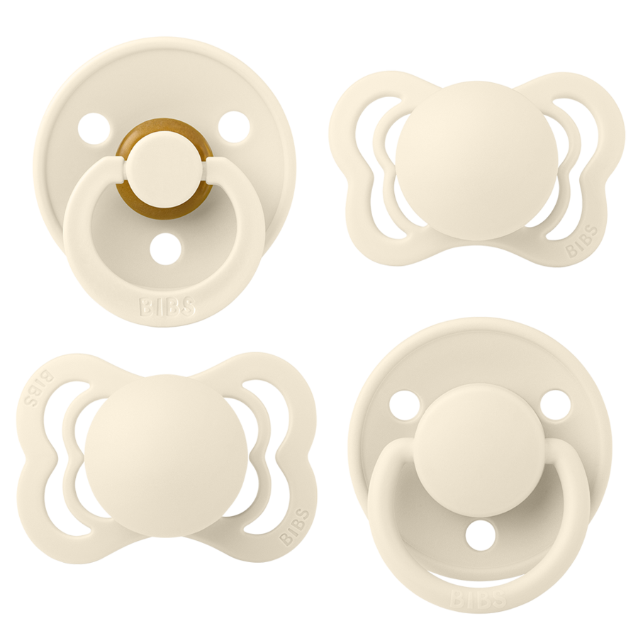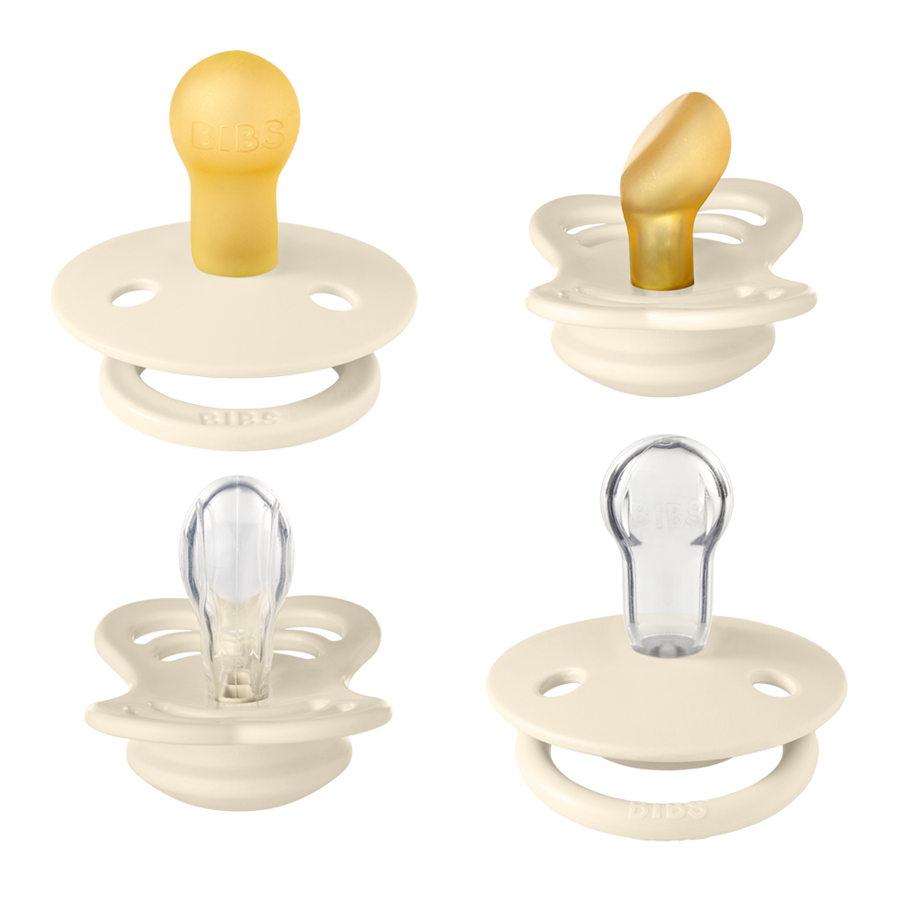 It's important to try out different shapes and sizes to find the perfect fit for your baby. Therefore, we have launched the BIBS Try-it Collection. In the collection, you get a pacifier from our 4 different categories with a selection of all our nipple types (round, symmetrical and anatomical) and materials (natural rubber latex and silicone).