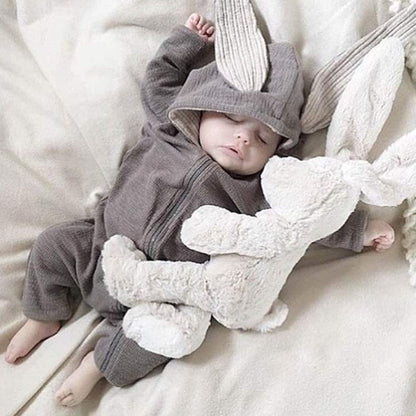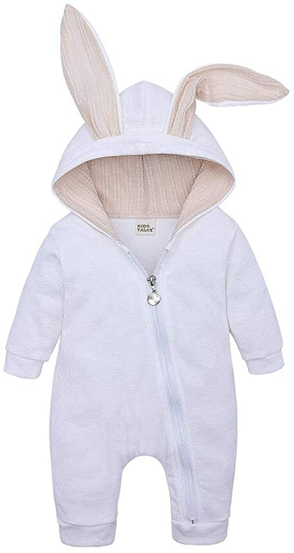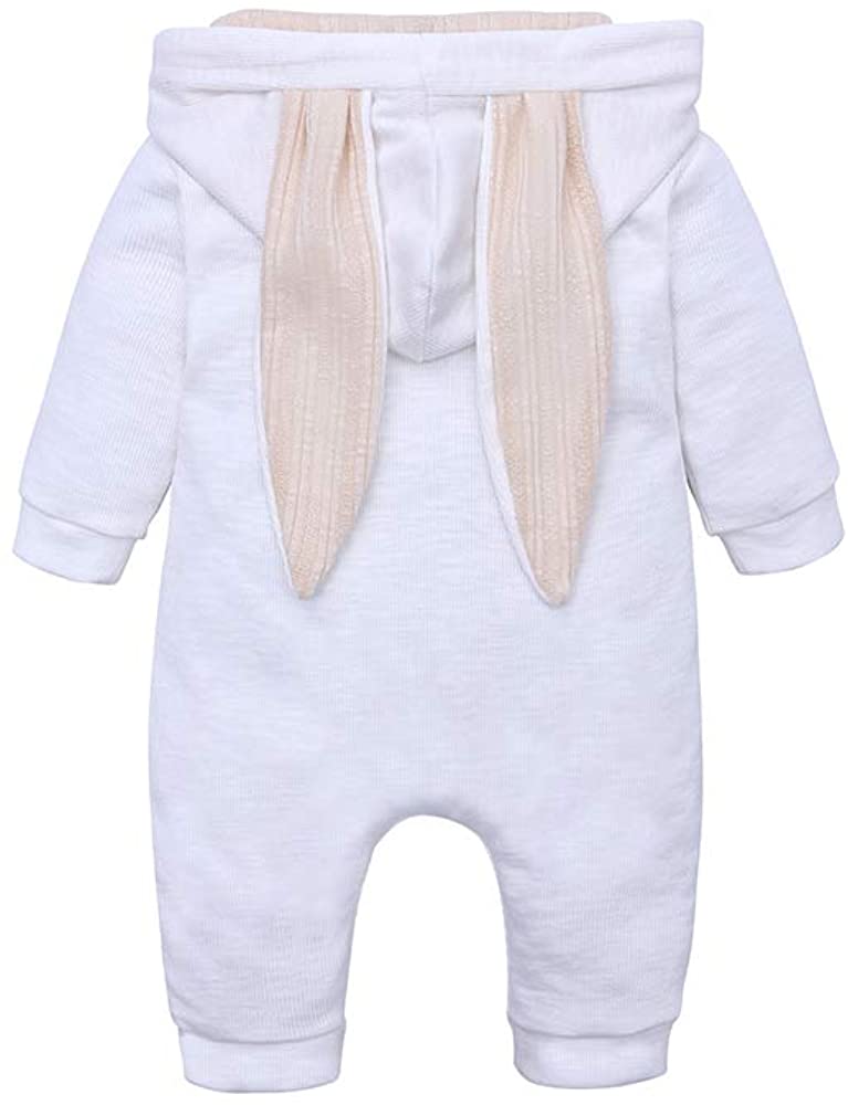 This adorable jumpsuit comes with a lined hoodie topped with the most adorable bunny ears. Not only cute, it’s also super comfy made from a soft cotton rib fabric and a zipper that extends across for easy changes.
