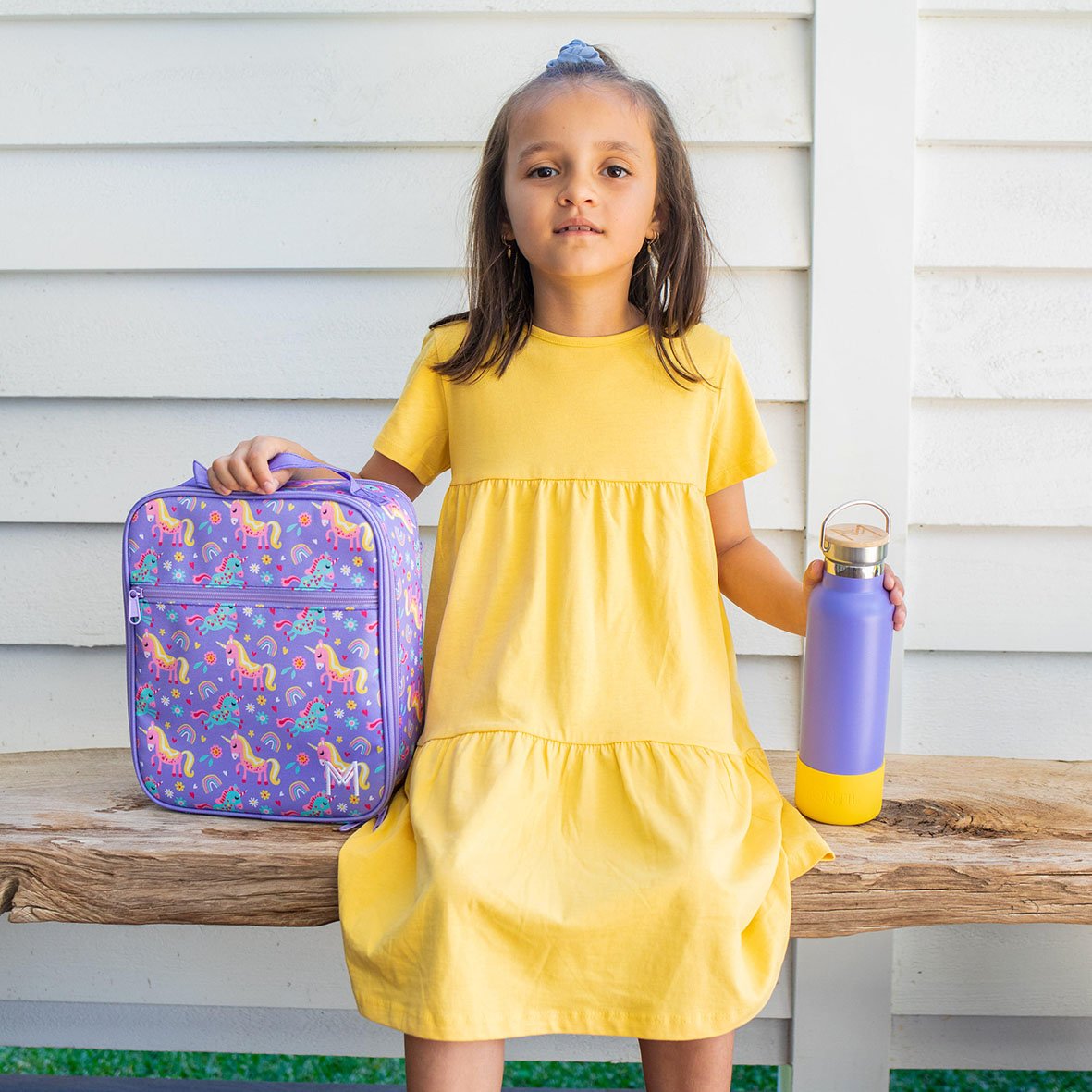 MontiiCo Insulated Lunch Bag + Ice Pack - Unicorn Purple - Large for Kids and Teens