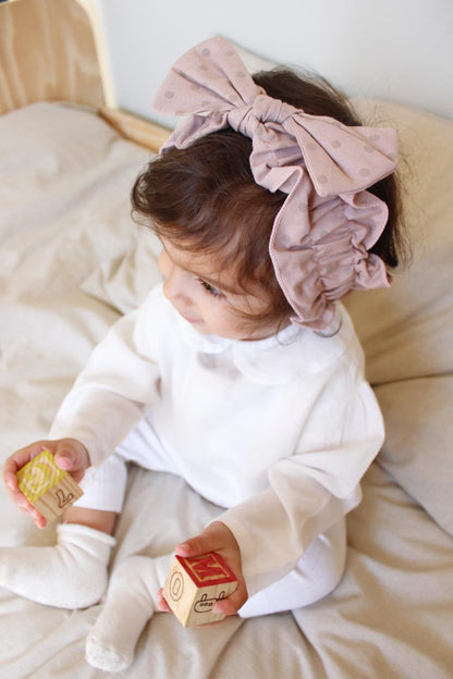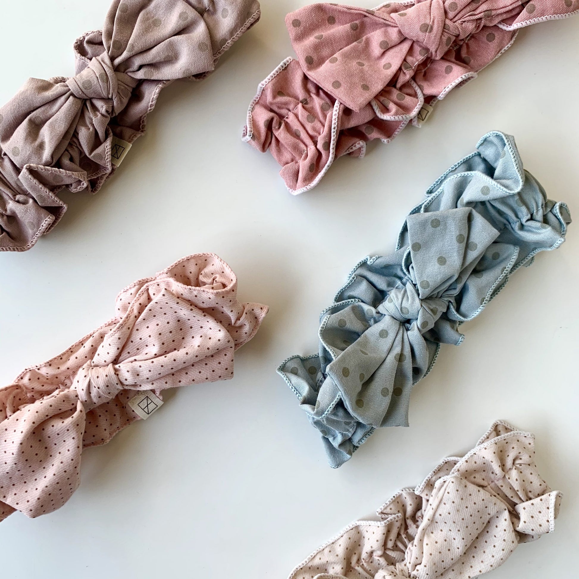 These soft cotton vintage styled headbands have a lovely ruffled detail and look super stylish on. They stretch and contact and are the perfect width making them extra comfortable and able to fit ages right from 6 months to teen years. Handmade with love. ♡