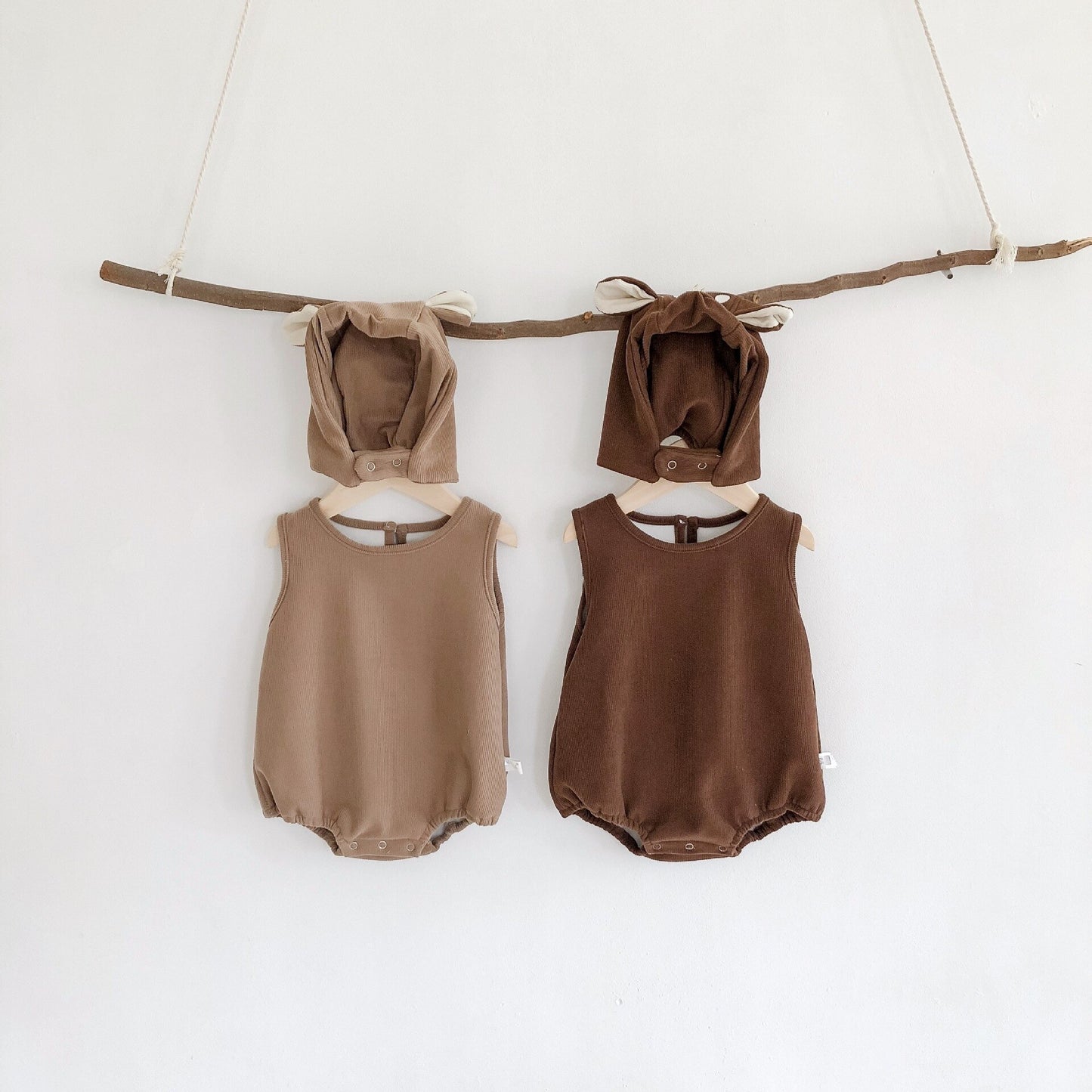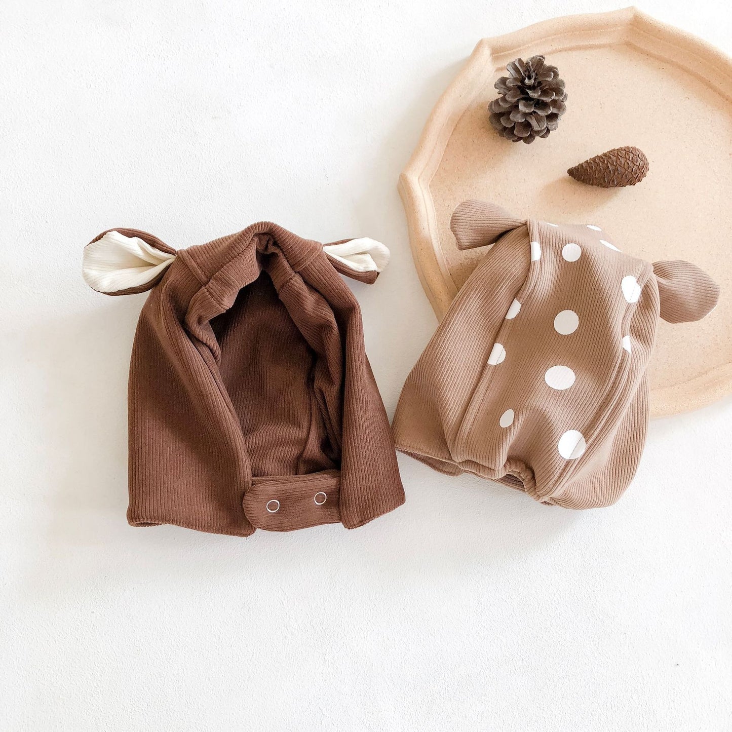Our Woodlands Romper is made of buttery soft corduroy with a gorgeous spots print at the back. The inside is lined with a plush velvet fleece for warmth and comfort. Comes with the cutest matching hat. Pair with some tights or leggings or wear alone. Perfect for photoshoots, occasion or everyday wear.